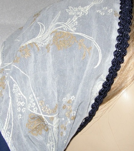 Navy & Blue Sheer Two Tone Design Mimkhatah A Great Accessory for Everyday Wear A beautifully soft sheer two-tone kerchief. Secure with navy design band ties. poly blend with top layer of poly sheer fabric handmade hand wash, air dry Devorah3 - $14.99